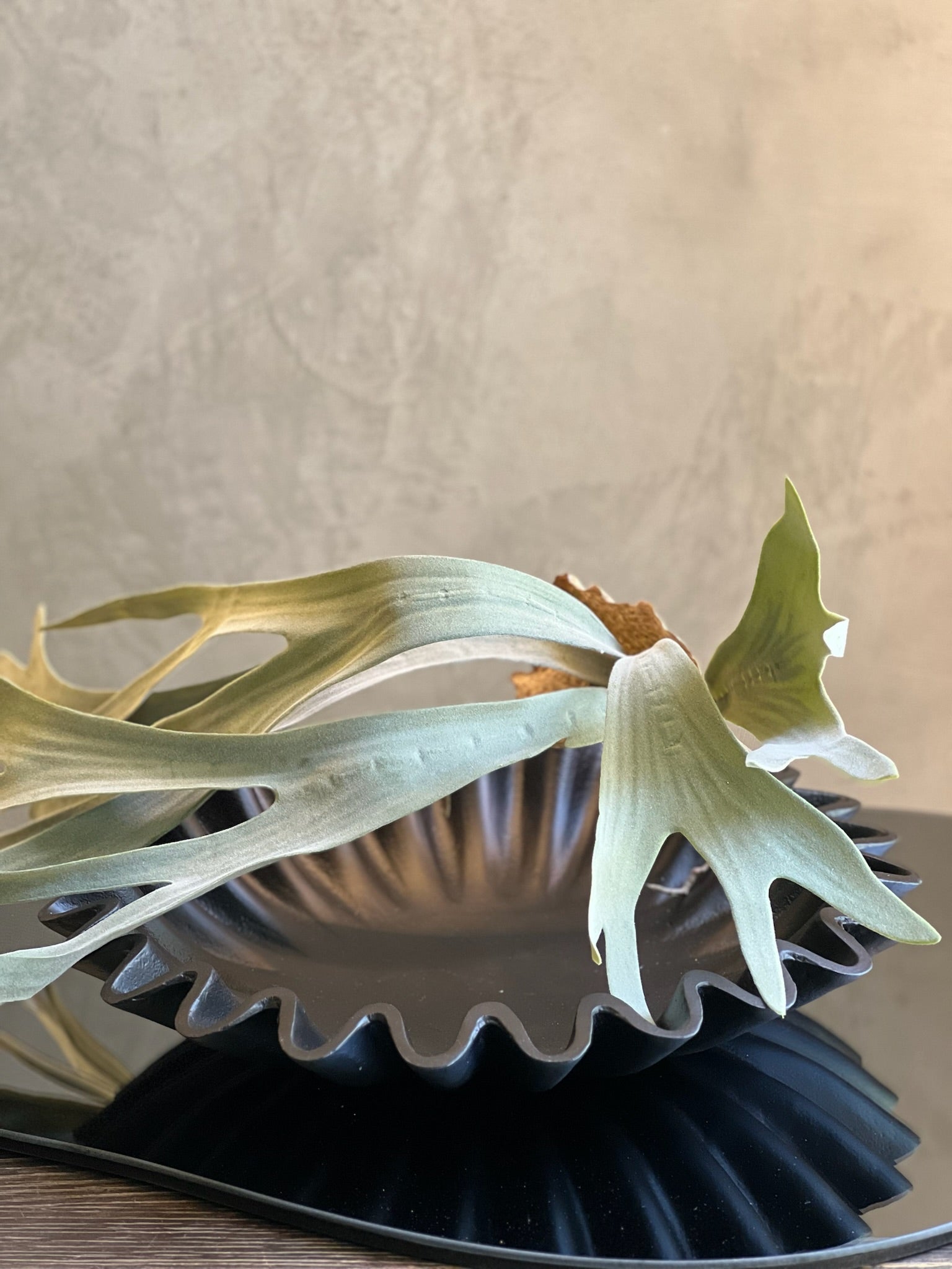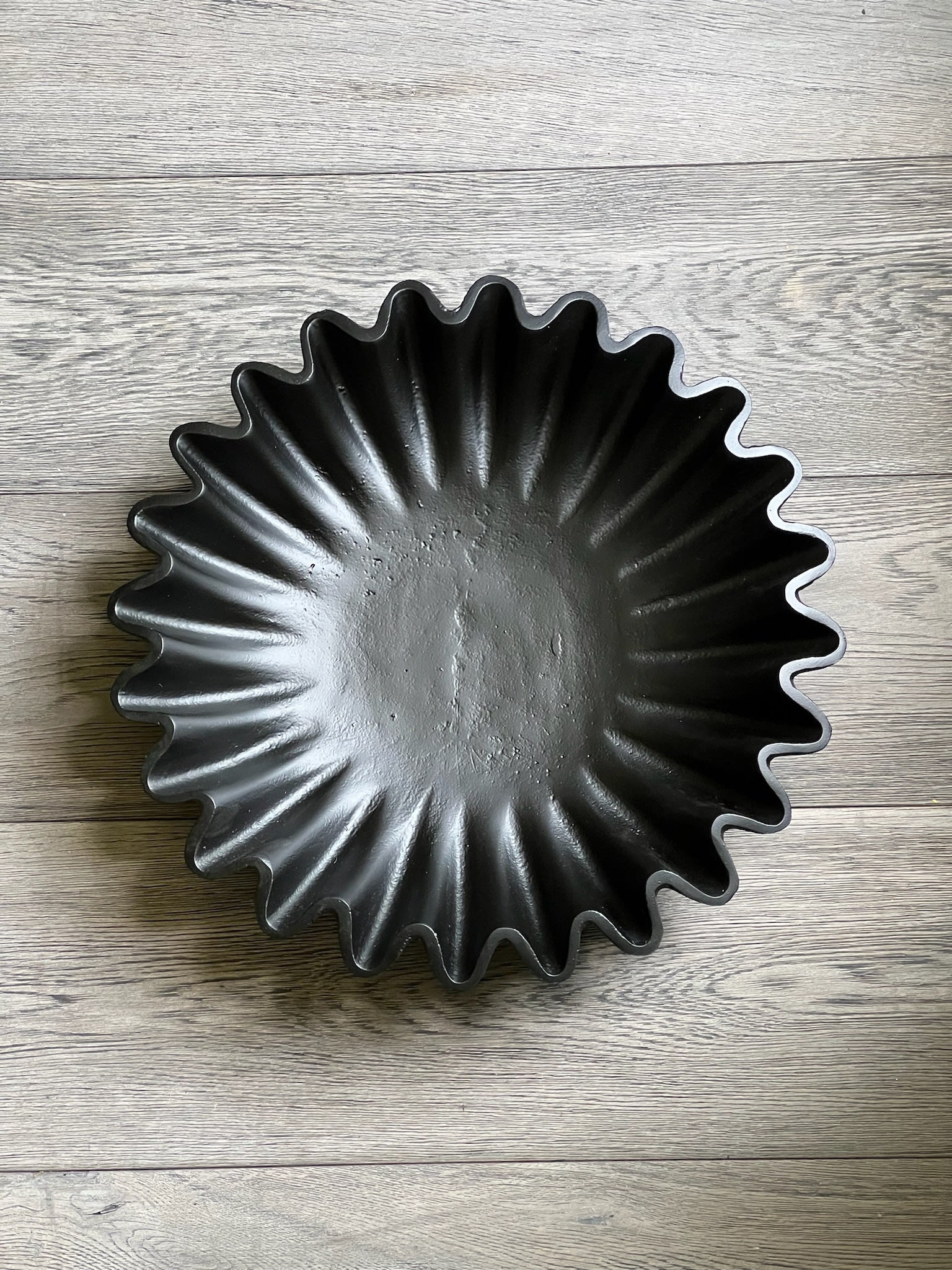 Base redonda con olanes negra de metal.