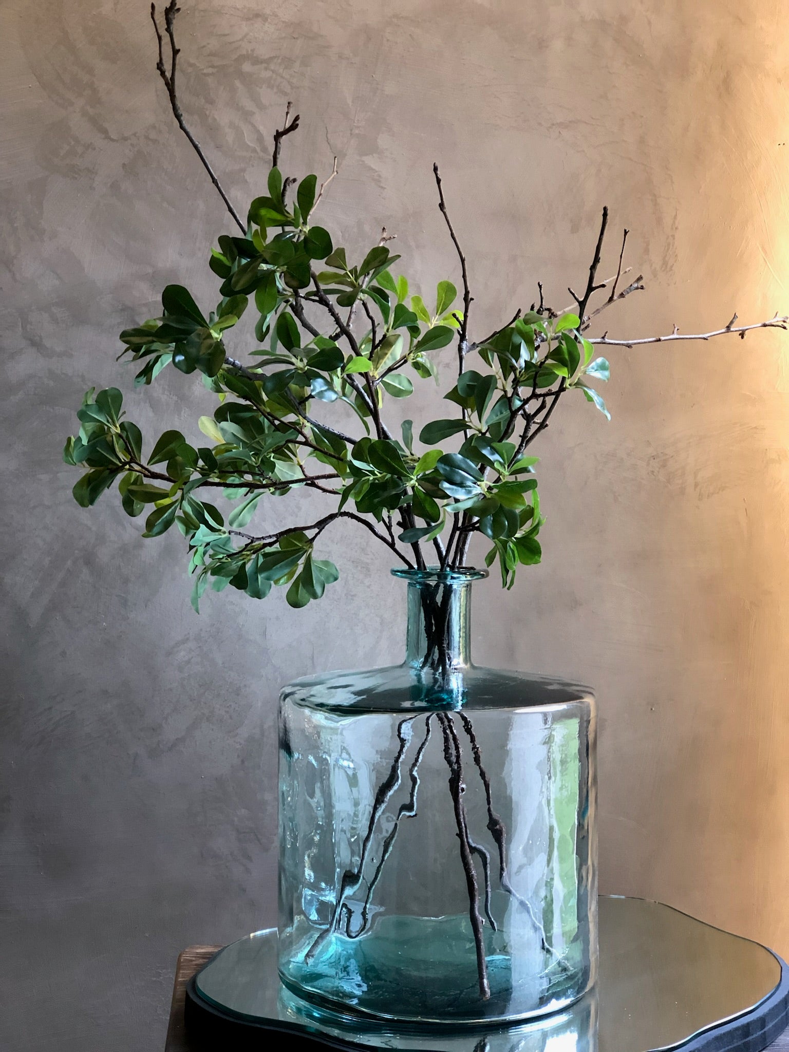 Base/florero gigante de vidrio azul.