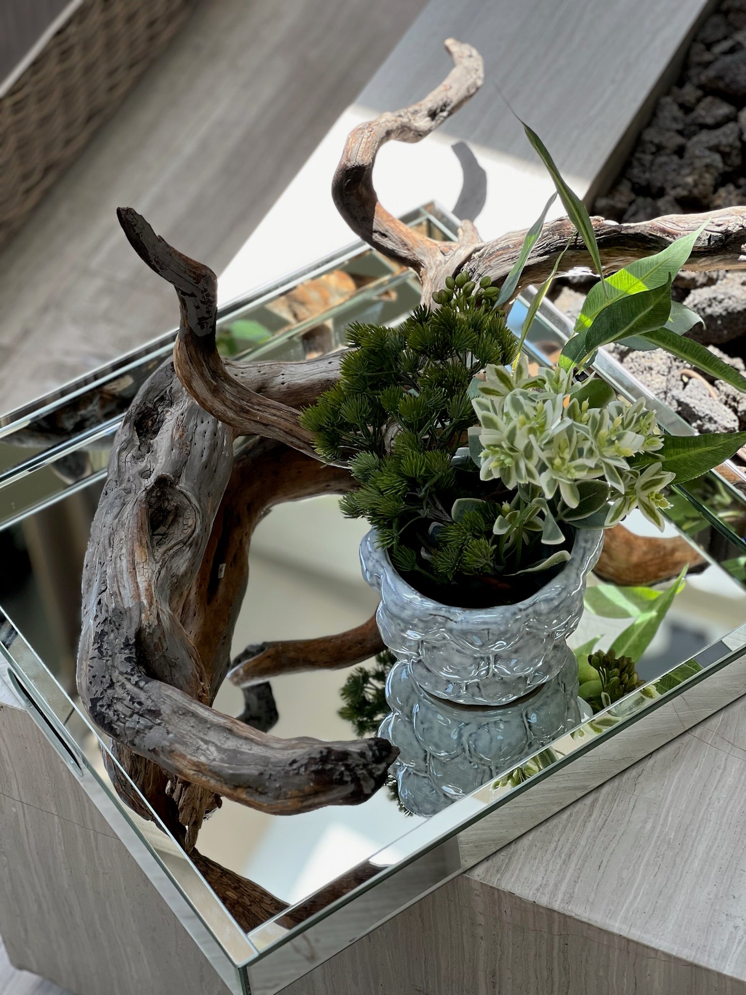 Charola de espejo decorativa y funcional.