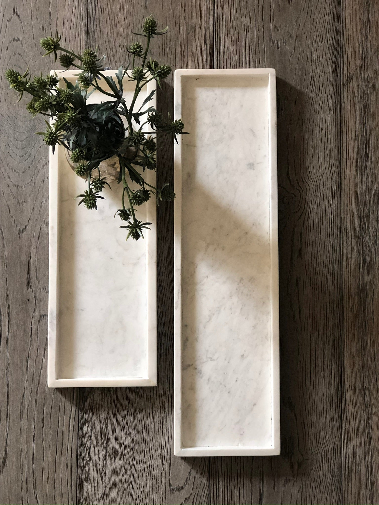 Charolas largas de mármol blanco.