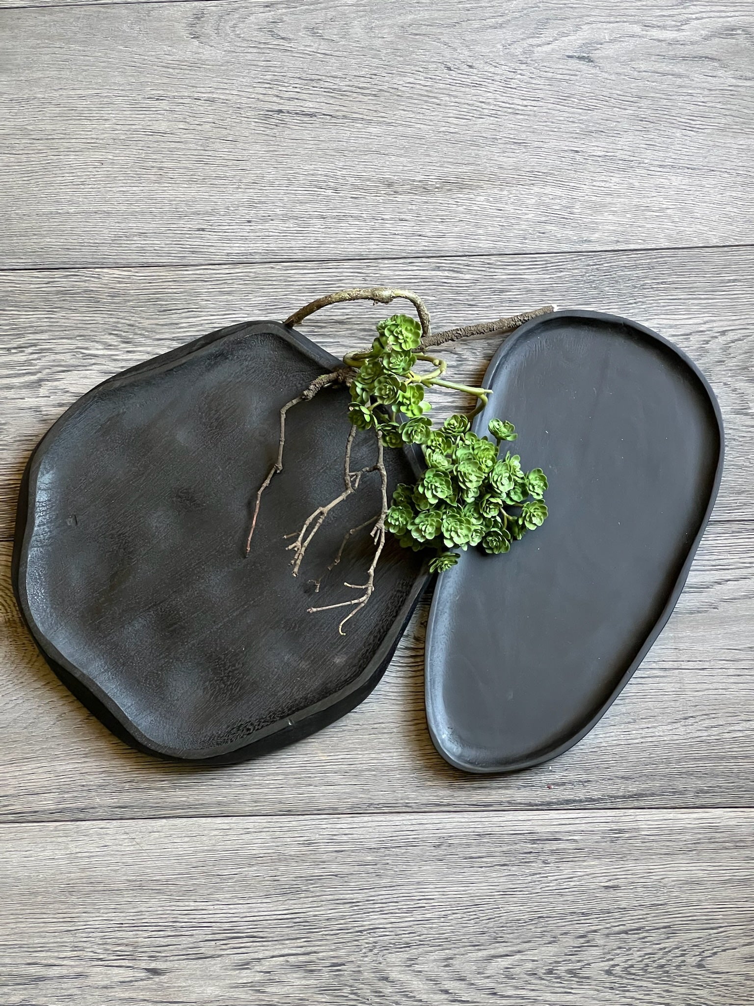 Charolas de madera negras.