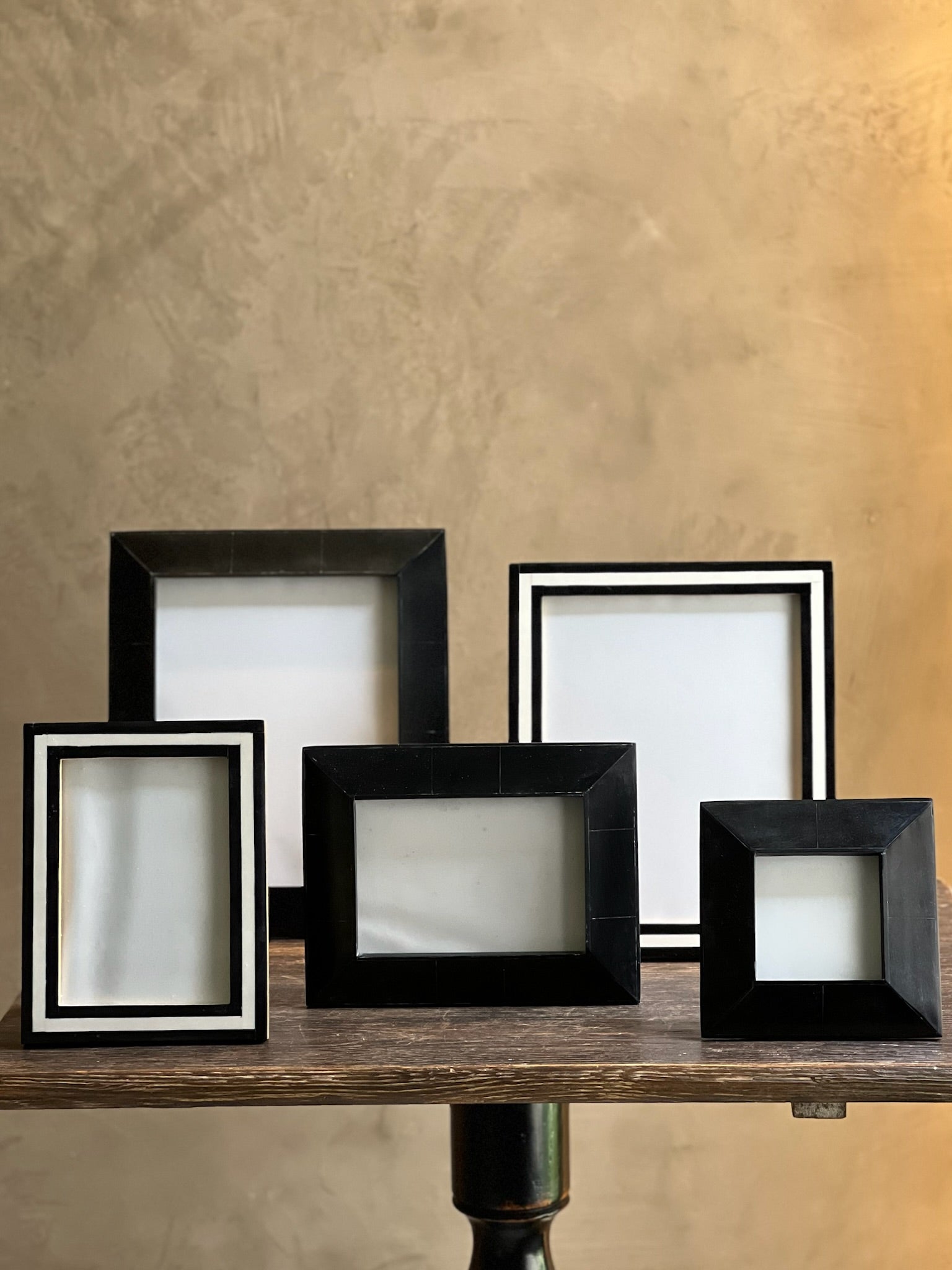 Marcos de cuerno negro de 3 tamaños.