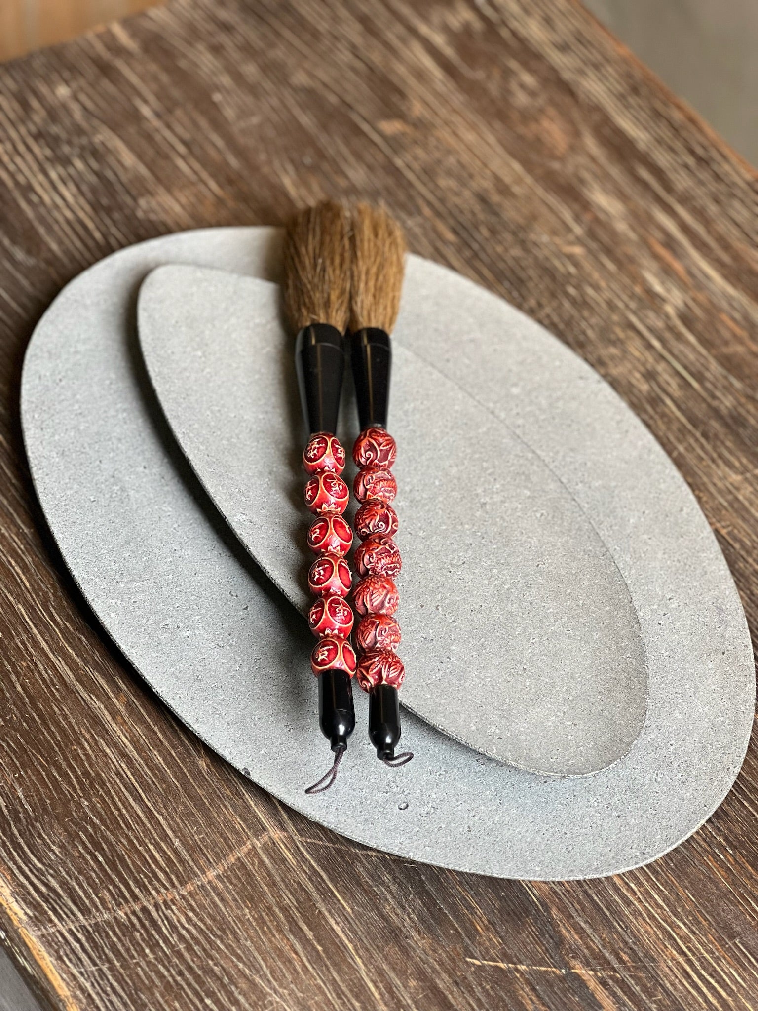 Platos de piedra decorativos.